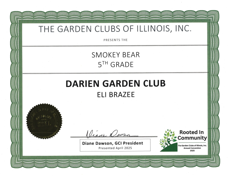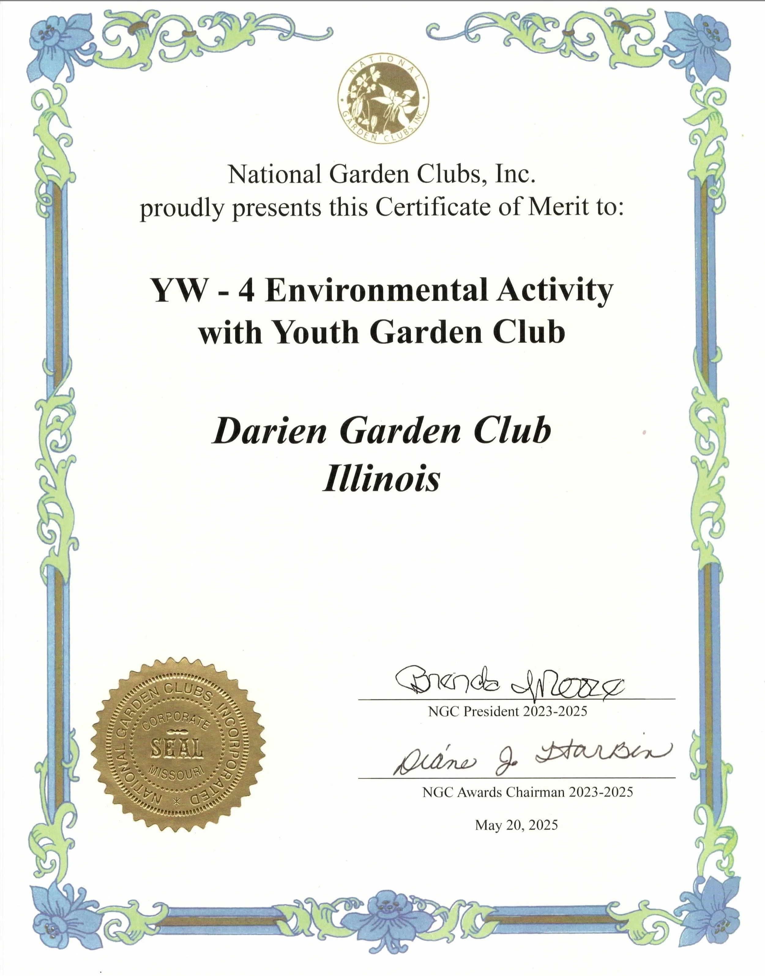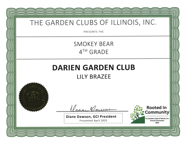 Information from the award sent on to the Garden Clubs of Illinois Inc.