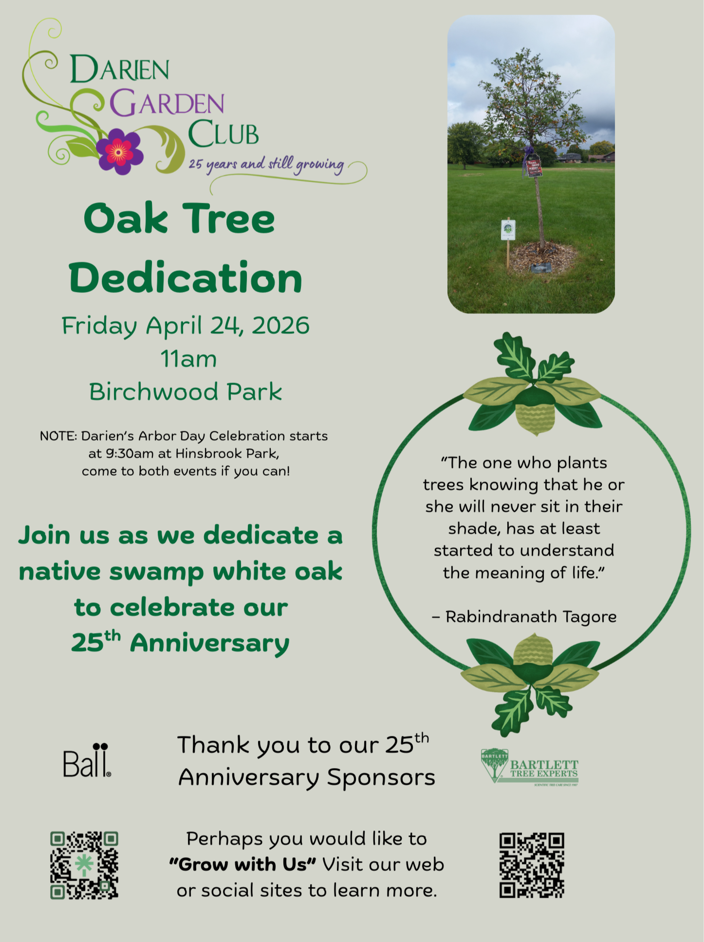 Thank You to Our Sponsors & Supporters!Click Here To Become One!25th Anniversary SponsorsBall Horticultural CompanyBartlett Tree Experts, Bolingbrook IL. Upcoming Events! Come Celebrate 25 Years with Us During Our Events! Mark your calendar for theDGC Oak Tree Dedication Mark Your Calendar For Our 25th Anniversary Celebration Mark Your Calendar For The Blue Star Dedication This Spring! For More On Blue Star Markers Click HERE Mark Your Calendar For All Of Our Celebrations And Events!