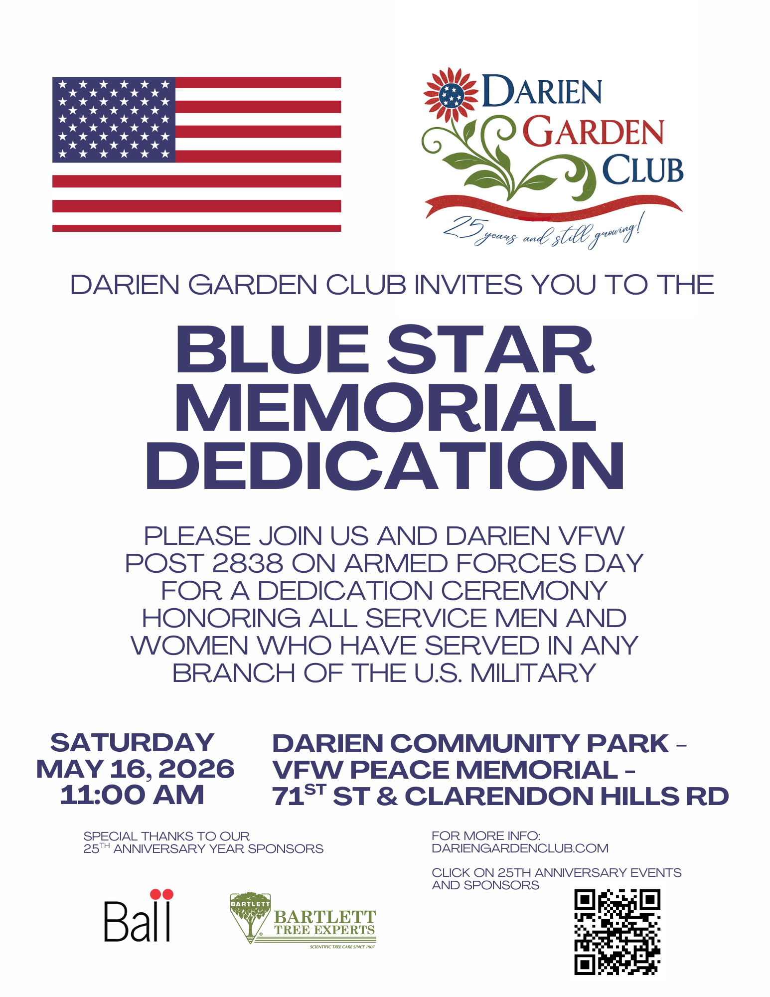 Join us as we honor all who have served in the United States Armed Forces with the Blue Star Memorial at Darien VFW Post 2838 Peace Memorial at Darien Community Park
