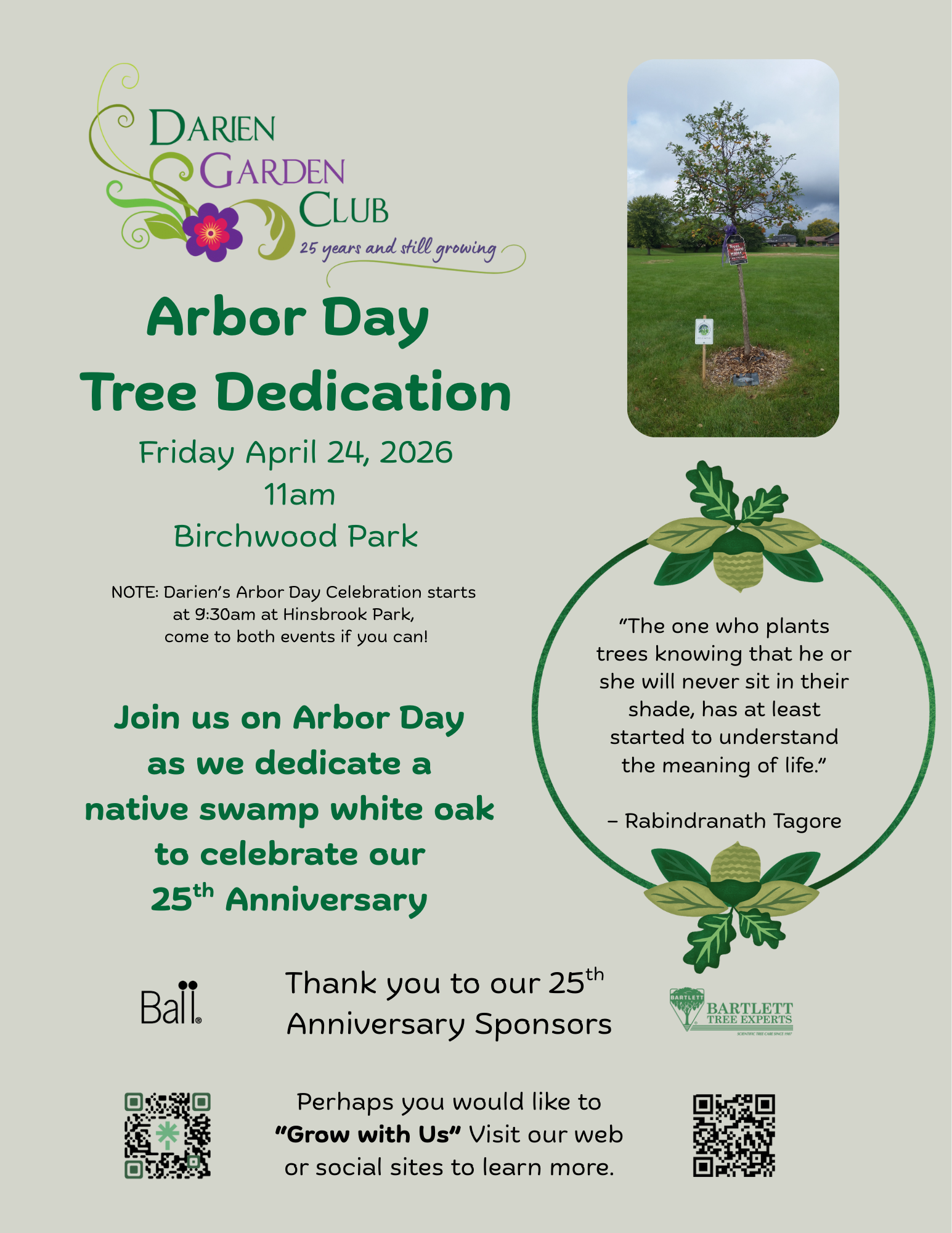 Join us for a morning of celebrating nature, promoting sustainability and honoring our club's 25th Anniversary as we dedicate an oak tree on Arbor Day!